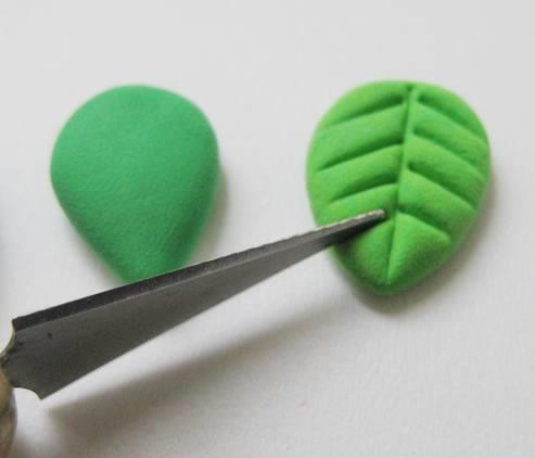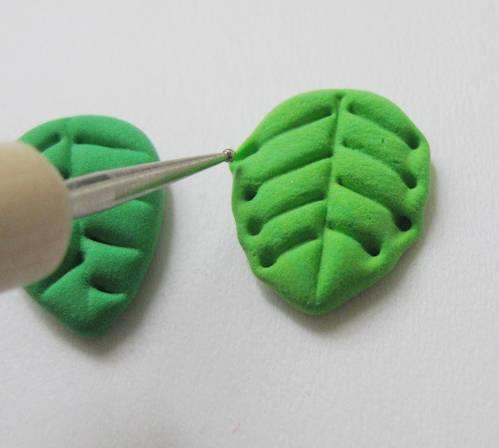 7、用工具在叶子周围压出纹理,让叶子更自然。