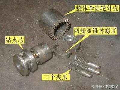 普通机械式的原理是靠伞齿外壳带动两边锥体牙圈,再带动三个夹,在钻夹芯的三个斜孔伸缩,,向前伸夹小,向后伸夹大,很好理解。