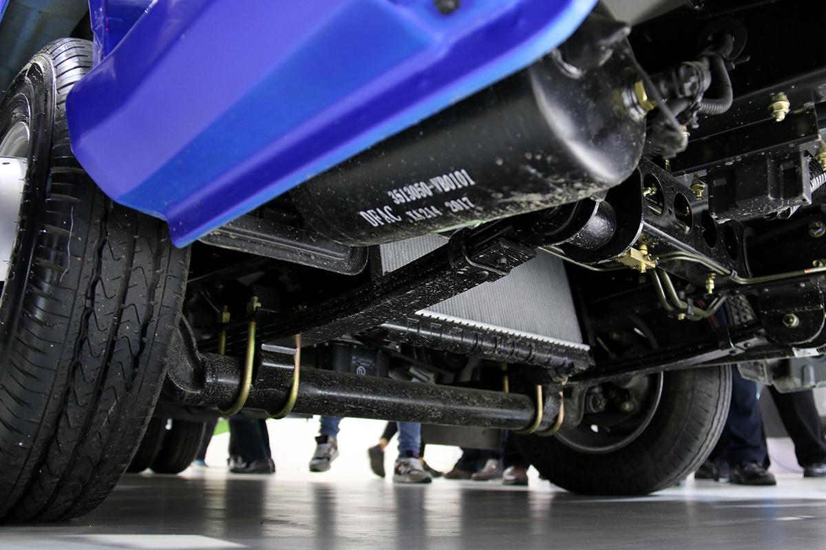 东风途逸小卡在动力方面选用了1.5L汽油发动机,满足国五排放标准的同时使用起来省心省力,相比柴油机噪音震动方面更有优势。变速箱为5速手动变速箱,实地感受档位清,换挡省力。底盘方面使用了高强度铆接结构大梁,变截面钢板弹簧,后桥钢板悬架为渐变刚度式结构,舒适承载两不误。轮胎方面采用了承载能力更强的后双胎设计,标配无内胎子午线轮胎,前盘后鼓式制动采用双回路设计。
