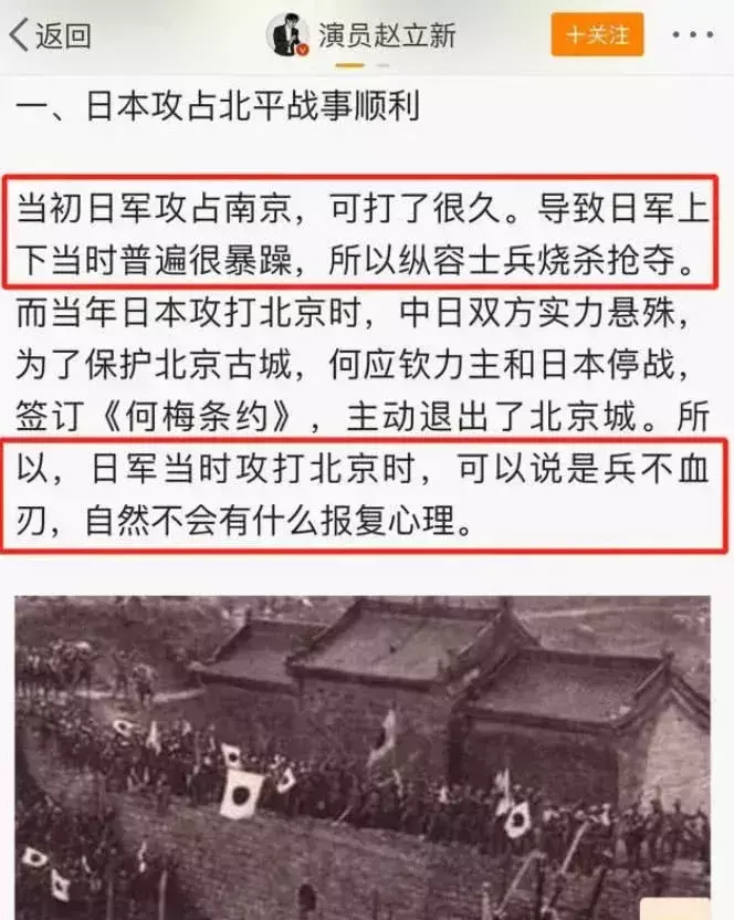早前,赵立新在微博发表了疑似美化日军侵华的言论,并与网友在评论区辩论,引发争议。
