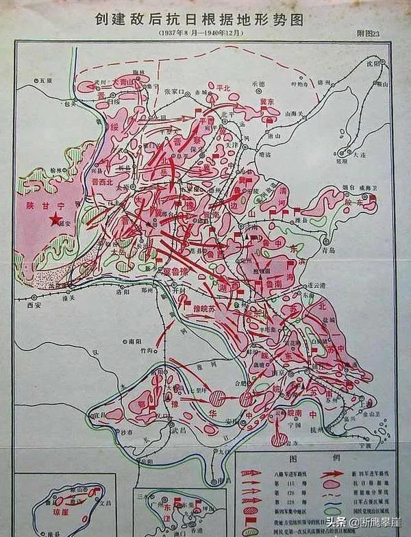 4、战略反攻阶段:从1943年12月敌后抗日根据地的建立到1945年9月日本投降。