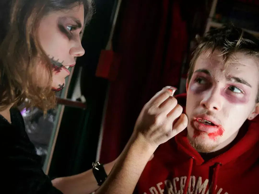 吸血鬼和僵尸化妆是传统的万圣节妆容