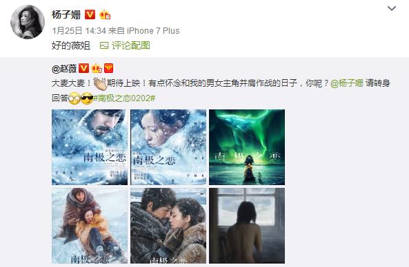 剧组都在为《南极之恋》宣传时,女主杨子姗微博晒图,导演笑了