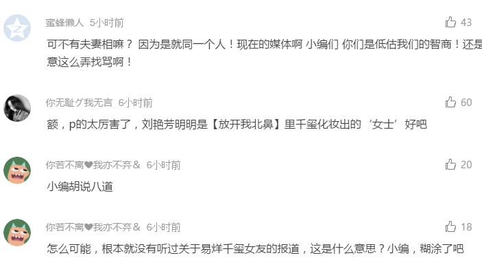眼尖的网友指出:额,p的太厉害了,刘艳芳明明是【放开我北鼻】里千玺化妆出的‘女士’好吧