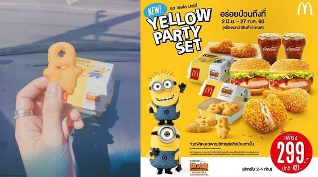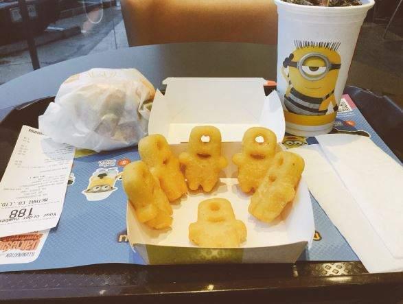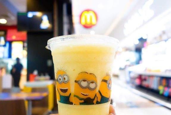 为了配合准备上映的《神偷奶爸3》,麦当劳近日推出了小黄人套餐,不只饮料有小黄人,连....连薯饼都做成小黄人了,真的太萌了!