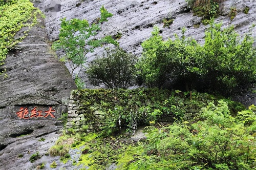 武夷岩茶历史悠久,而大红袍乃是武夷岩茶中之佼佼者,传说明末清初即有其名,1921年蒋叔南游记中有提到武夷山数处有见,如天心岩九龙窠(即有摩崖石大红袍三个字的一处,传系1927年天心寺僧刻)、天游岩一处、珠濂洞一处(也有人叫水谦洞),但非常遗憾的是,这些游记和调查都没有交代清楚这几处大红袍更具体的地点、属哪个寺庙茶庄、是否是同一种或同名不同种、茶树特征是否一样以及品质如何。现在我们能够看到的是生长在武夷山九龙窠景区的大红袍母树有三棵六株,至今已有360多年的历史,根据联合国批准的《武夷山世界自然与文化遗产名录》,大红袍母树作为古树名木列入世界自然与文化遗产。
