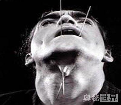 如果常人用针插入自己的身体内,一定会很痛并且流血。而TimCridland却能毫不犹豫的将针插入自己的胳膊,震慑了广大观众。人们怀疑他感觉不到疼痛,而科学家也证实他具有高于普通人的疼痛承受能力。