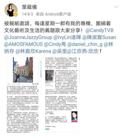 叶蕴仪还应邀在杂志上写文章、分享自己的见闻和艺术知识。