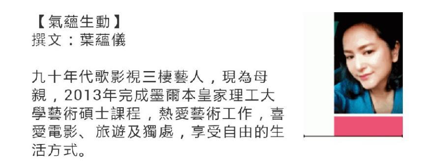 每篇文章之后,都附上她的简介:九十年代哥影视三栖艺人,现为母亲,2013年完成墨尔本皇家理工大学艺术硕士课程,热爱艺术工作,喜爱电影、旅游及独处,享受自由的生活方式。