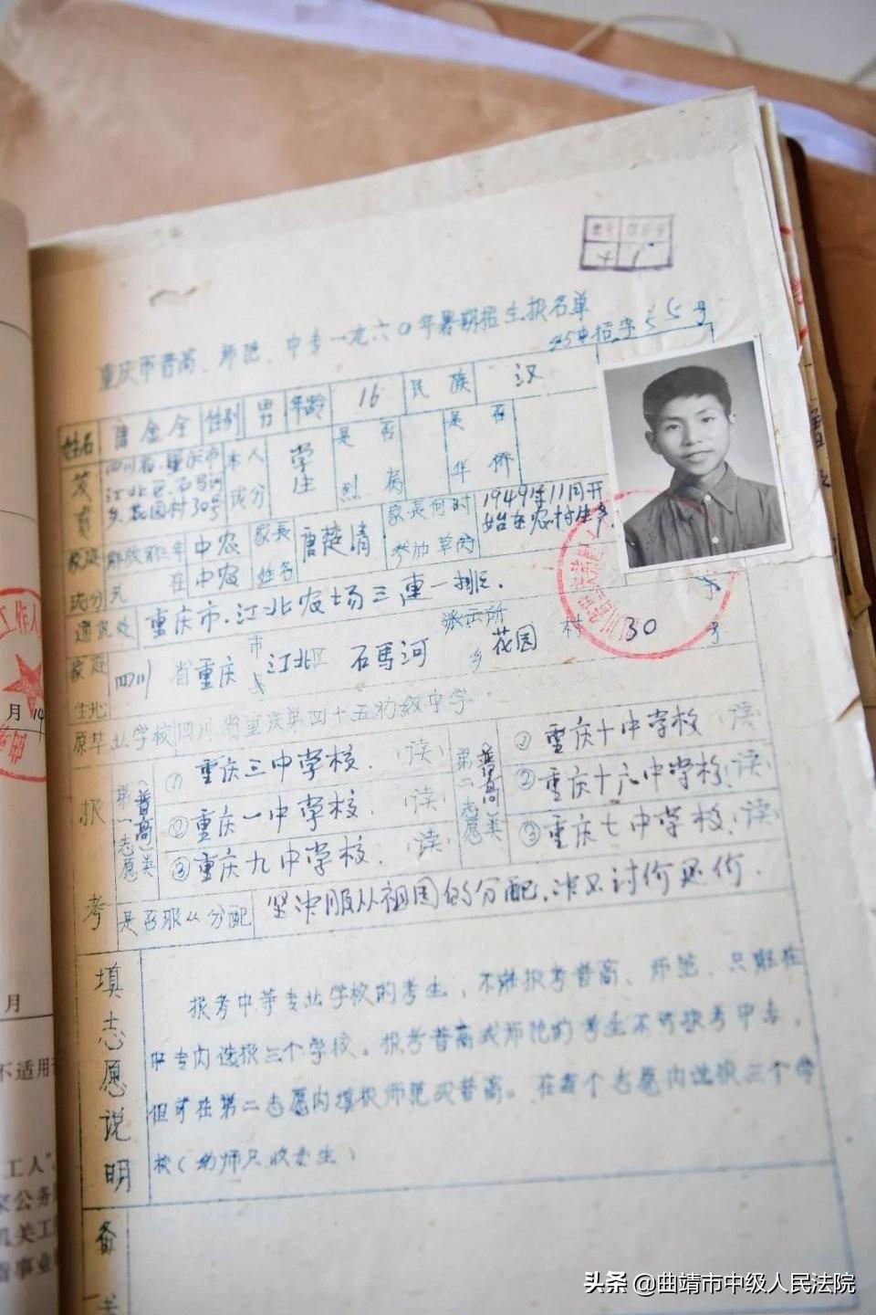 尽管工作困难重重,但是我们的心情是愉快的,只要事实调查清楚,冤假错案得以平反,内心就踏实,就充满成就感。 ——唐剑我来自重庆的一个农村家庭,小时候家里以务农为生,1968年从西南政法学院(现为西南政法大学)法律专业毕业后被分配到了云南七七O三部队农场。农场工作两年后被调至富源县一个乡村中学任教。