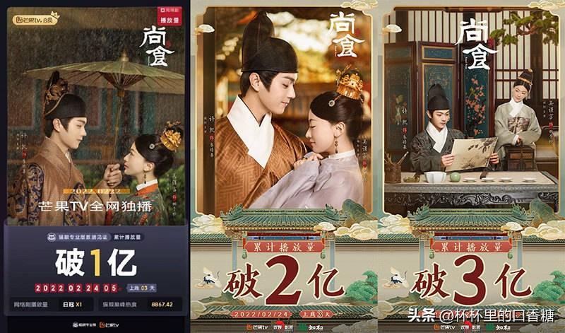 《延禧攻略》的得体CP再续前缘,许凯从侍卫扶正为皇帝(明宣宗朱瞻基),吴锦言从贵妃转为尚食局女官姚子衿,尊卑对调但还是女撩男,故事述说孙氏幼时被指婚为太孙妃,确后皇室悔婚害了孙氏生母白死,愤而决定以假身份入宫,最后撩的皇太孙倾心!除了有圆梦的感情线,还有让观众看得饥饿不已的美食,加上开播后连播七日,三天就累积播放量达到1亿,后续更是单日突破亿,气势无法挡。