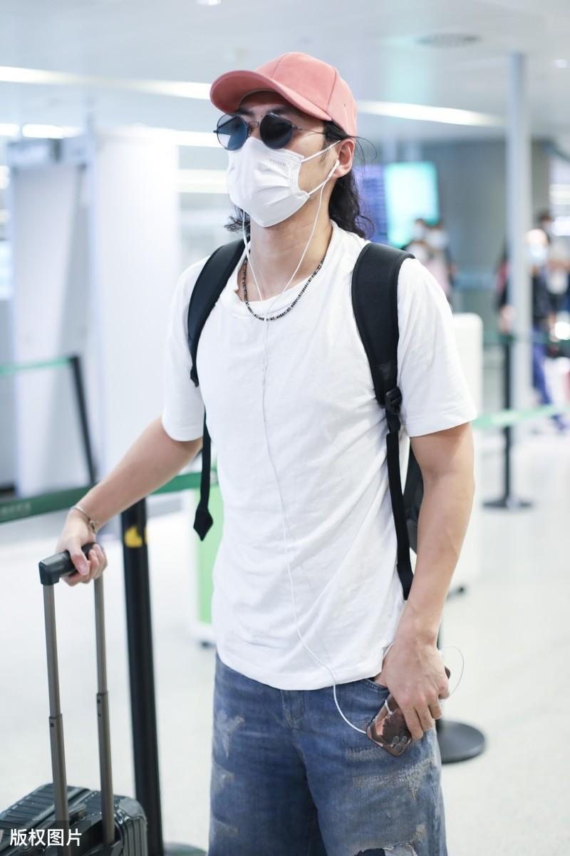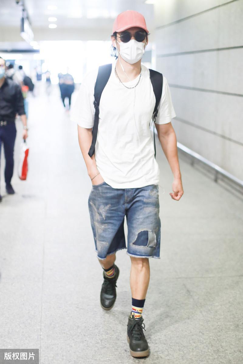 袁弘,白色T恤+牛仔短裤+粉色棒球帽简约粉嫩。