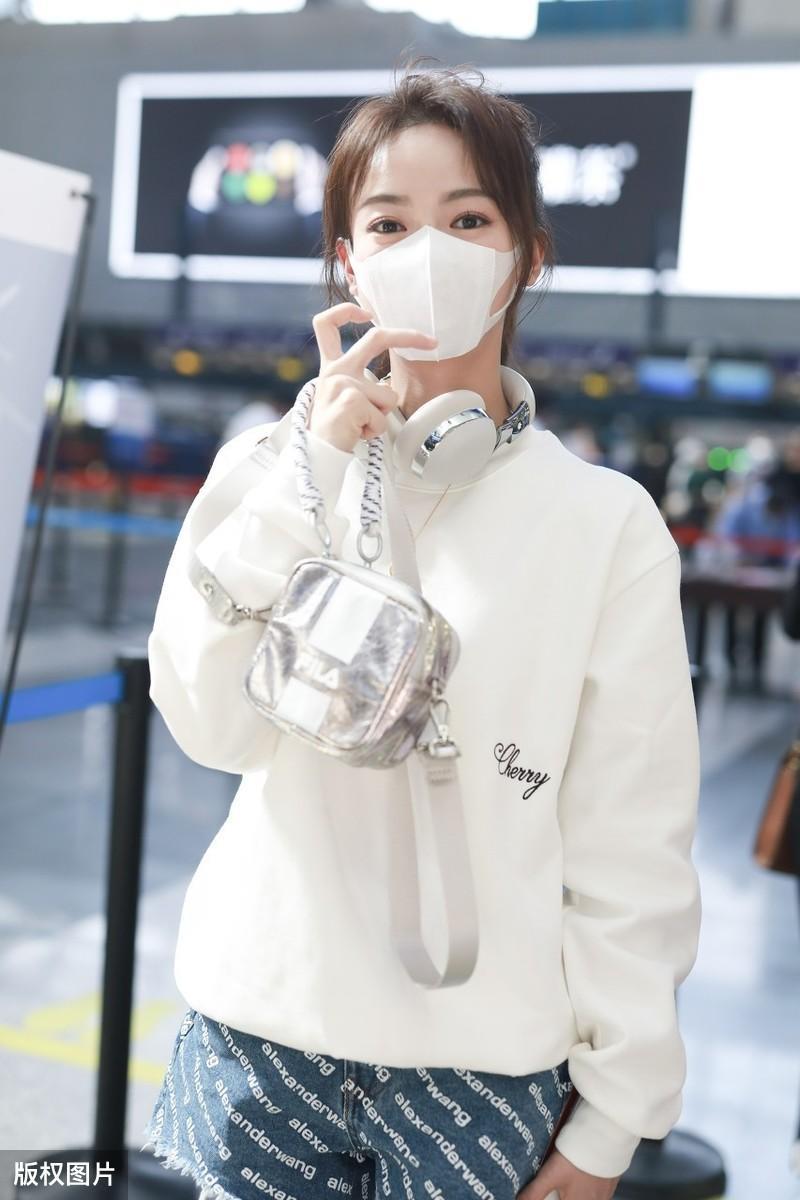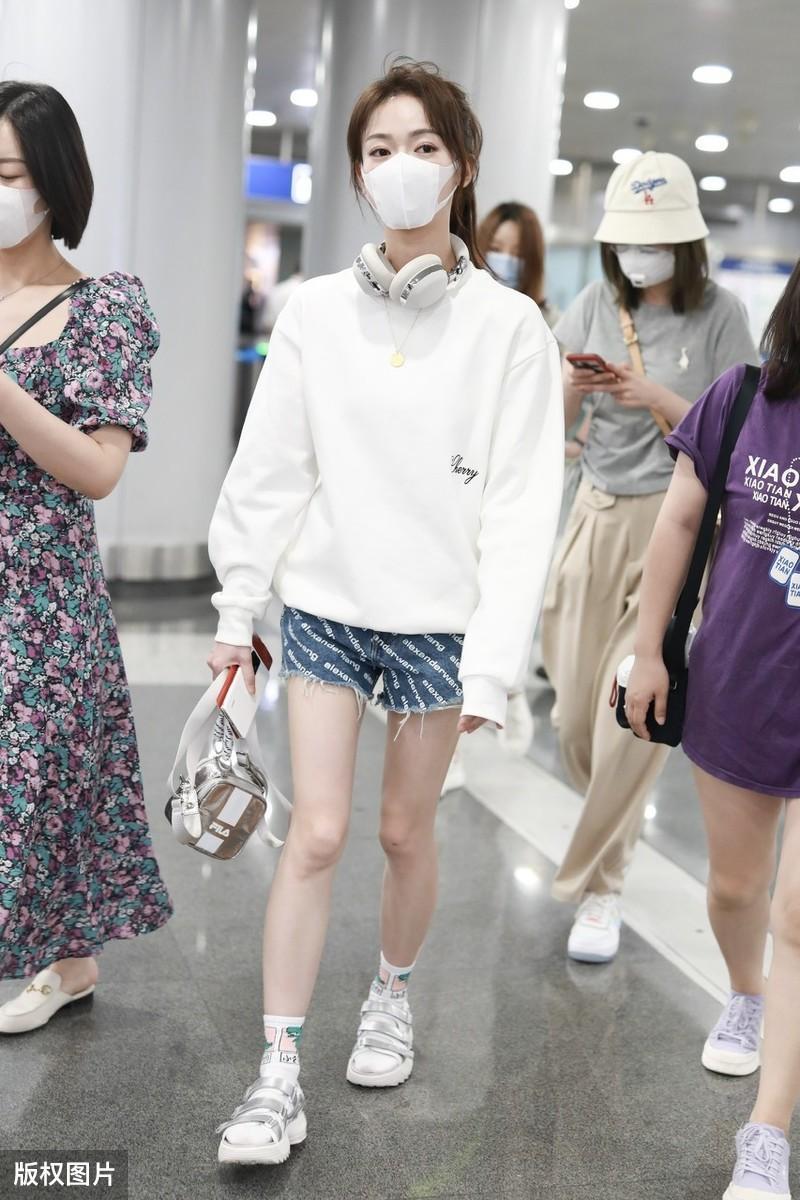 吴谨言,白色卫衣+Alexander Wang牛仔短裤+老爹凉鞋+白色短袜清纯潮范。