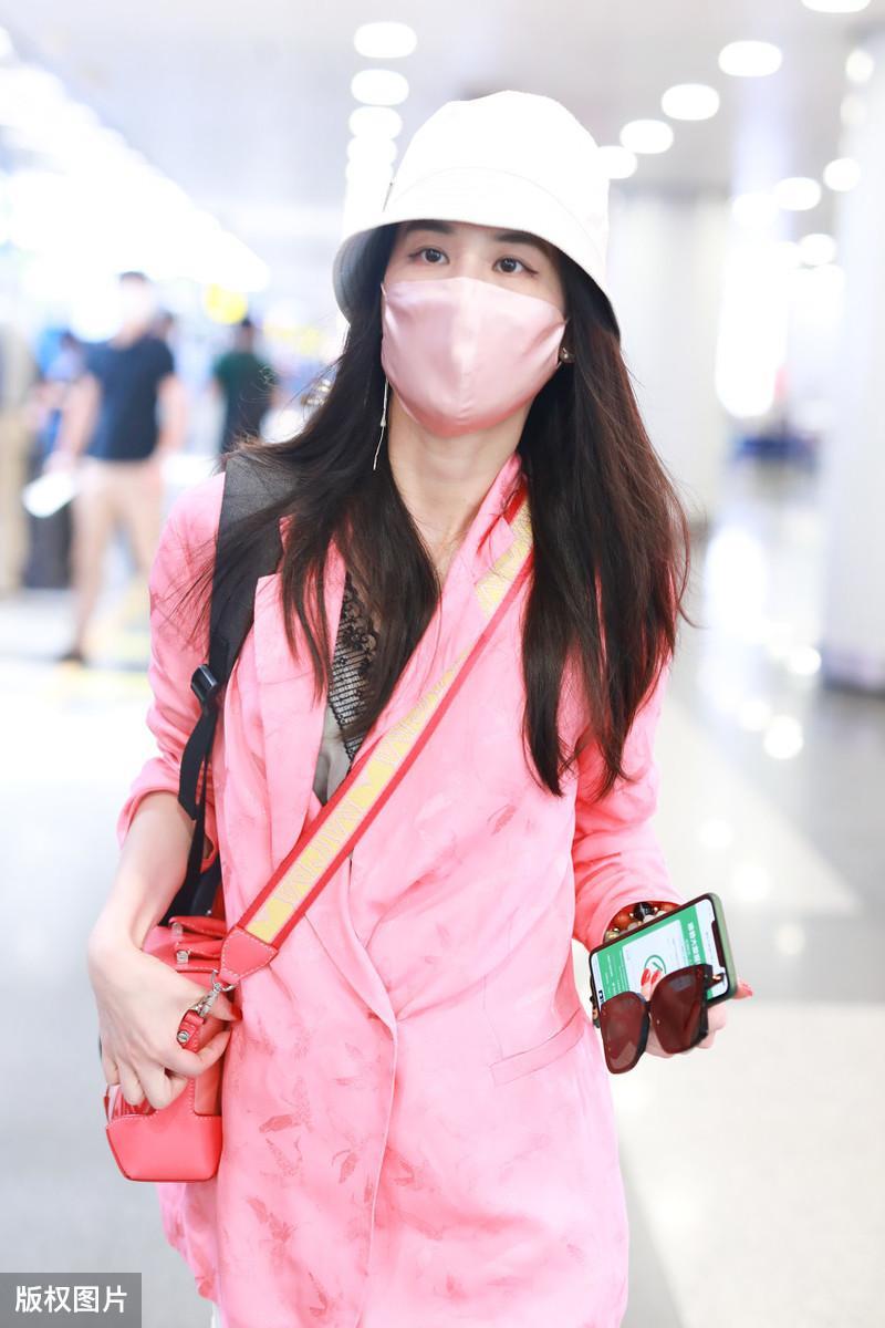 黄圣依,粉色西服+白色渔夫帽,靓丽姐姐。