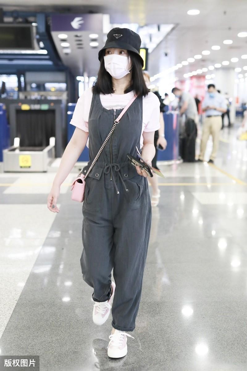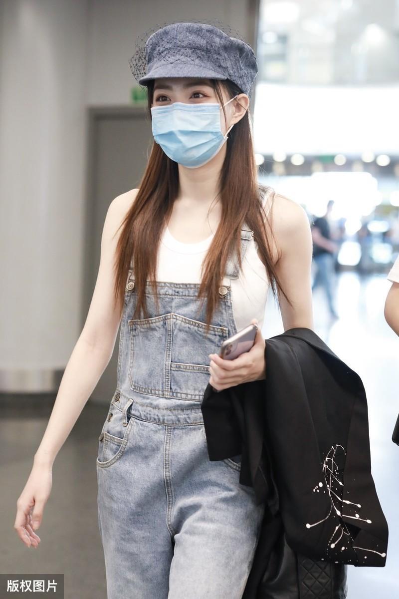 徐璐,背带裤+贝雷帽+Chanel手袋清新自然。