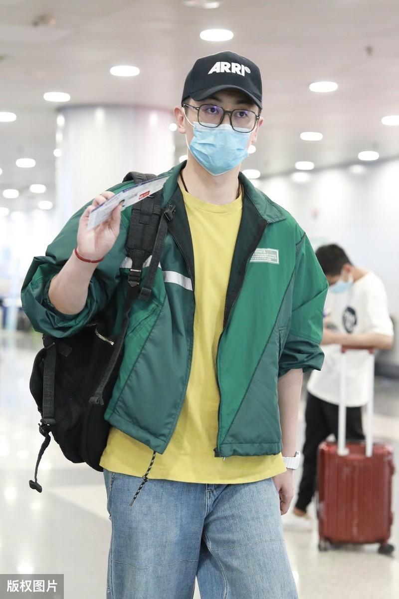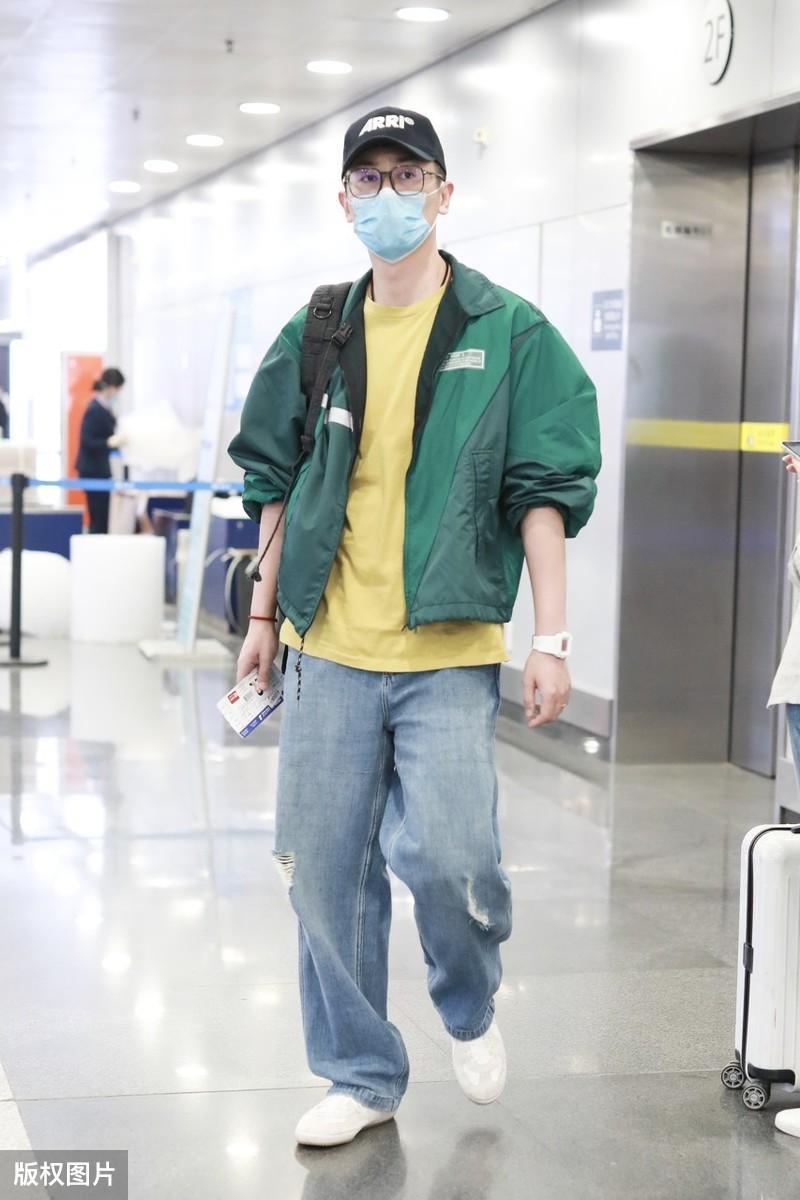 朱亚文,黄色T恤+拼色防风外套+阔腿牛仔裤+小白鞋帅气有型。