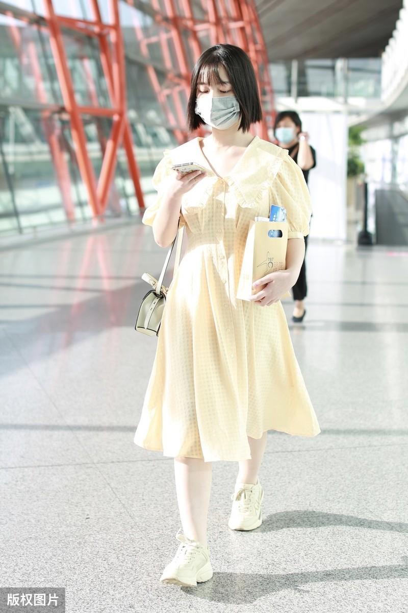邓恩熙,黄色少女裙+米色单肩包,青春靓丽。