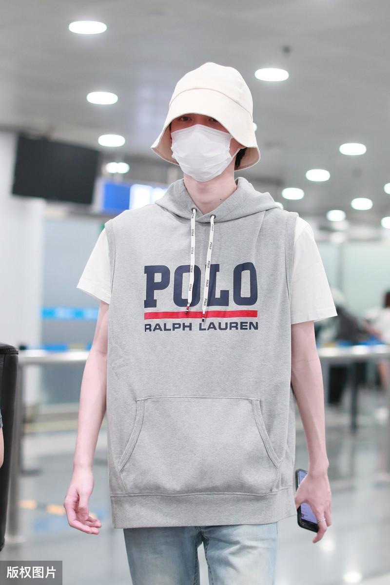 周翊然,Polo无袖背心+白色T恤+牛仔裤帅气叠搭。