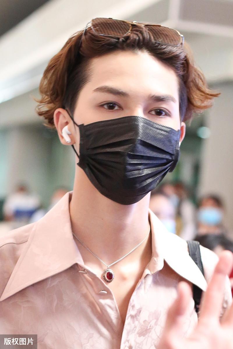 朱正廷,粉色印花衬衫+西裤复古精致。