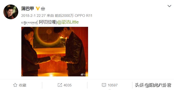 虽然蒲巴甲和梁洁在当时并没有公开回应恋情传闻,但在2018年2月1日当天晚上,蒲巴甲突然在微博上晒出与梁洁的合影,并用藏语甜蜜告白对方称:“我爱你”。