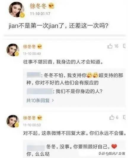 可直到女演员王鸥与刘恺威的“夜光剧本”风波曝光后,徐冬冬突然连发三条微博,似暗指王鸥并不是第一次“片场送温暖”,之后,徐冬冬又删除了微博。