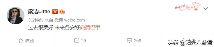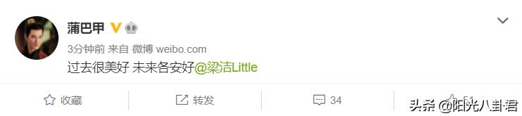 刚刚,演员蒲巴甲与女友梁洁双方工作室同时发声明宣布分手,声明称两人已于去年结束恋人关系和平分手,随后,两人再通过各自微博发声“过去很美好,未来各安好”,并艾特了对方。#蒲巴甲梁洁分手#