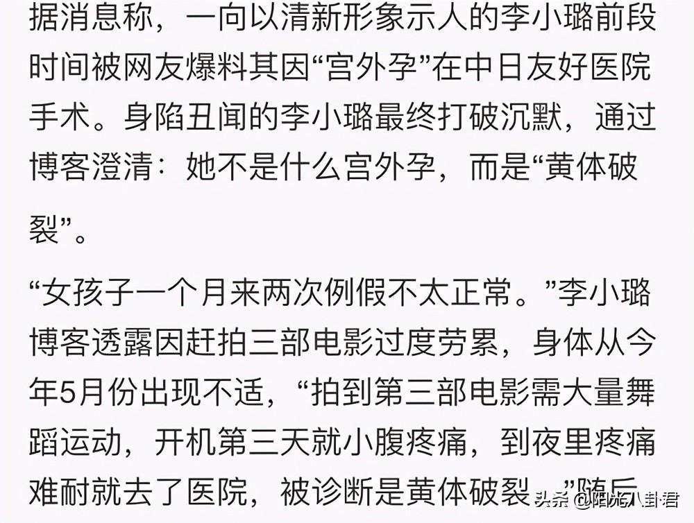 而李小璐与蒲巴甲这对姐弟恋不仅爱的高调,在2009年的时候,蒲巴甲陪同李小璐进出医院被质疑“宫外孕”,对此,深陷丑闻许久的李小璐后续也只能无奈发声,自己其实是黄体破裂。