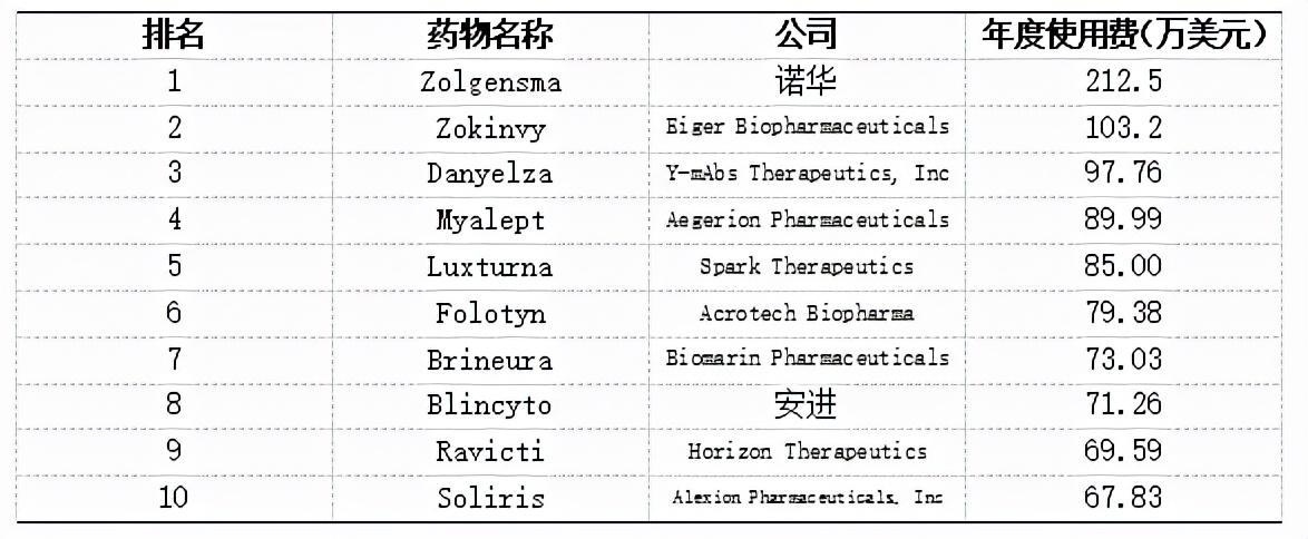 前段时间,美国公布了全球十大最贵药物榜单,其中排名前三的分别是Zolgensma、Zokinvy和Danyelza,售价分别为212.5万美元、103.2万美元和97.76万美元。