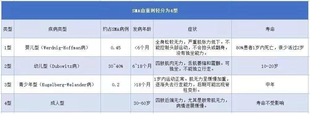 根据发病的年龄、病情轻重等,SAM可以分为0型、I型、II型、III型和IV型5种类型: