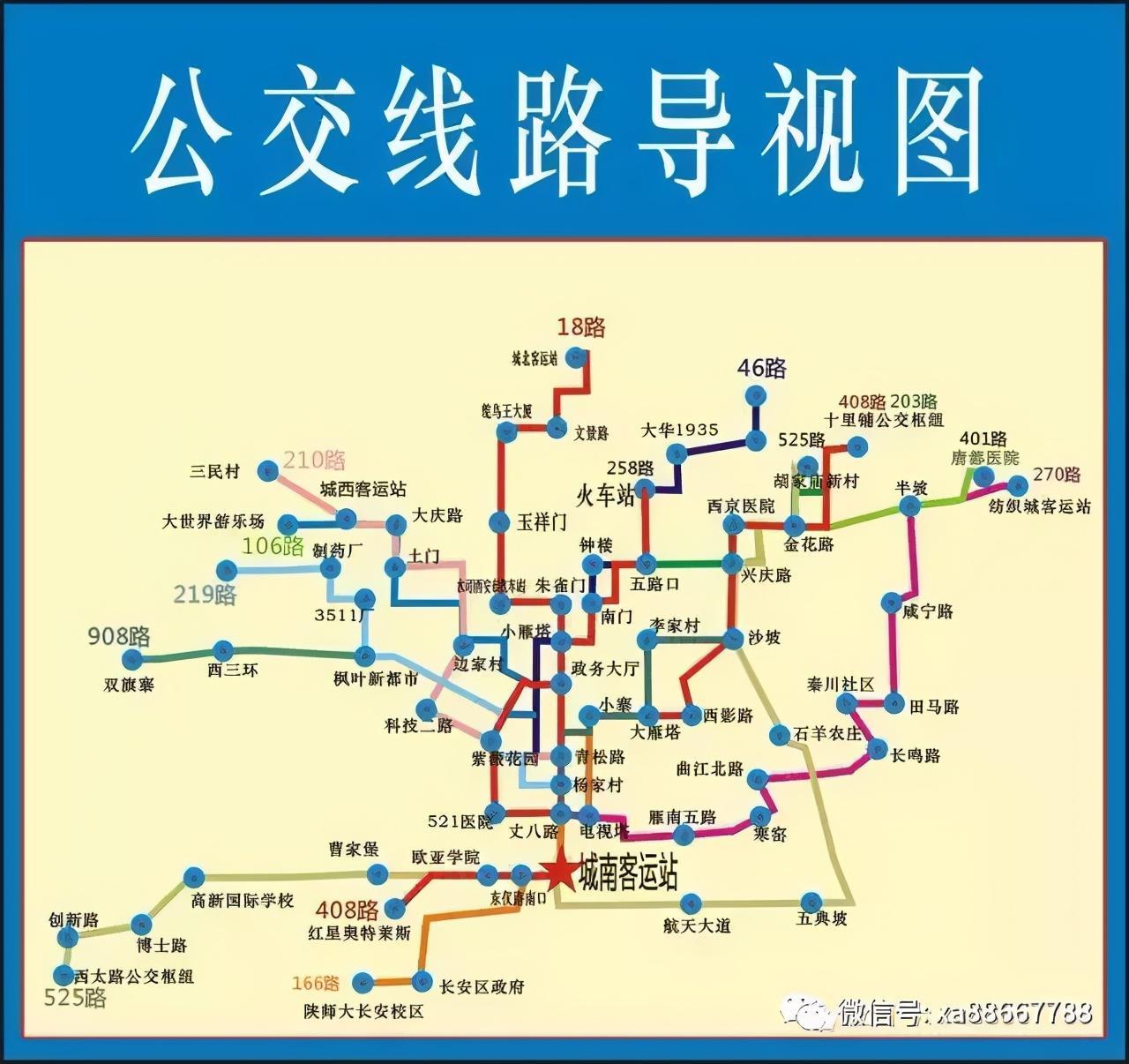 车站现有线路44条,其中省级线路8条,辐射四川、湖北两省;省内线路33条,覆盖汉中地区、安康地区、商洛地区、渭南地区;市内线路4条,主要有鄠邑区、焦岱、汤峪等。
