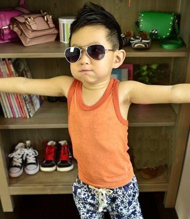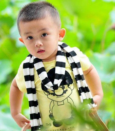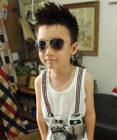 将三岁小男孩的头发剪成圆寸发型,头发刚刚超过发际线一点点,很是干练凉快的发型,最适合有领导气质的小男孩了,戴上一副墨镜,就像黑道大哥一般,酷酷的很有魅力哟。