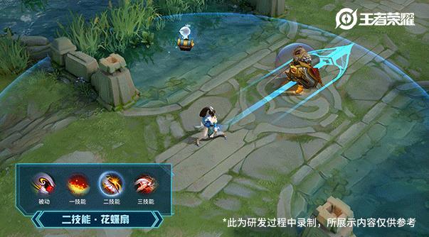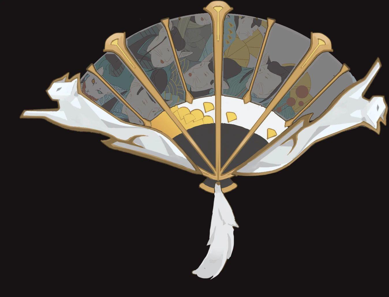 在武器设计上,我们保留了折扇的外形锚点,通过添加元素和丰富结构的方式,使其更加巧妙地呈现出皮肤的主题。