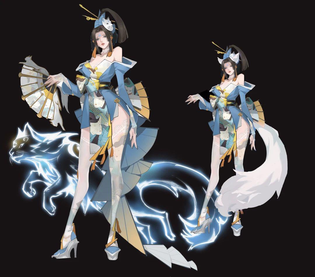 不知火舞新皮肤采用了灵猫刺客的概念,灵猫神秘而又高贵美丽的形态,非常契合不知火舞外表性感、精通格斗的女忍者设定。新皮肤整体采用了蓝白大体颜色格调,以及一些东方服饰造型,让整体看起来更富有美感。