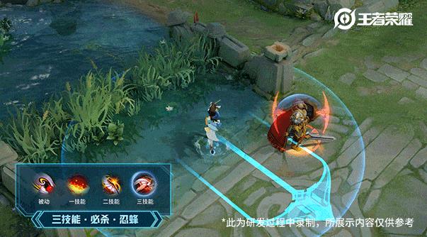 在保留不知火舞“火”元素的流动感的基础上,选择了更为神秘的蓝色气焰效果。同时还加入了扇形碎片、狮猫影子等元素作为辅助,使角色的包装更加丰满。为了突出狮猫幻化的身份,每次释放技能或被动触发时,都有猫尾残影显现。