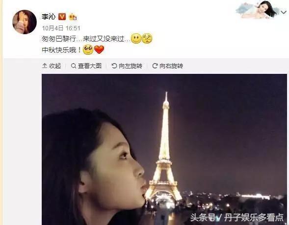 两人之间不是没有端倪的,在10月份李沁就发过一张在巴黎埃菲尔铁塔前的照片。
