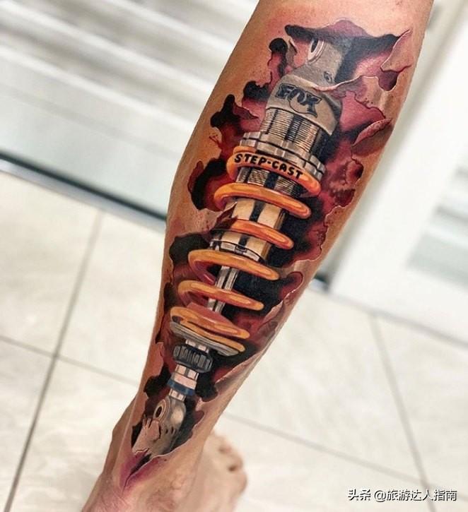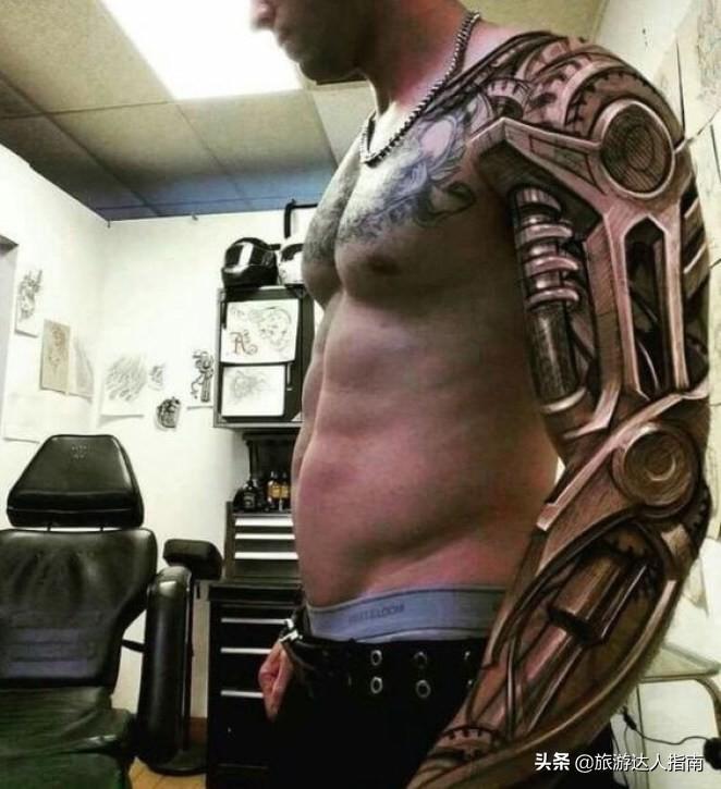 为了配合残疾的一条腿,把另一条腿也纹成了机械的。