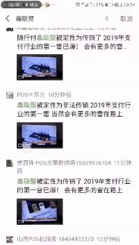 这个视频是记者去采访报道宁夏XX地区打击传销犯罪活动所取得的成果和在反传销上做的一些工作。从头到尾没有提过随行付、也没有提过鑫联盟。朋友圈内疯传的图片视频就是截取的记者在随机拍摄过程中,出现了随行付和某品牌的POS机,在这些POS下面备注的是“从事传销活动的违法犯罪工具(POS机)”。