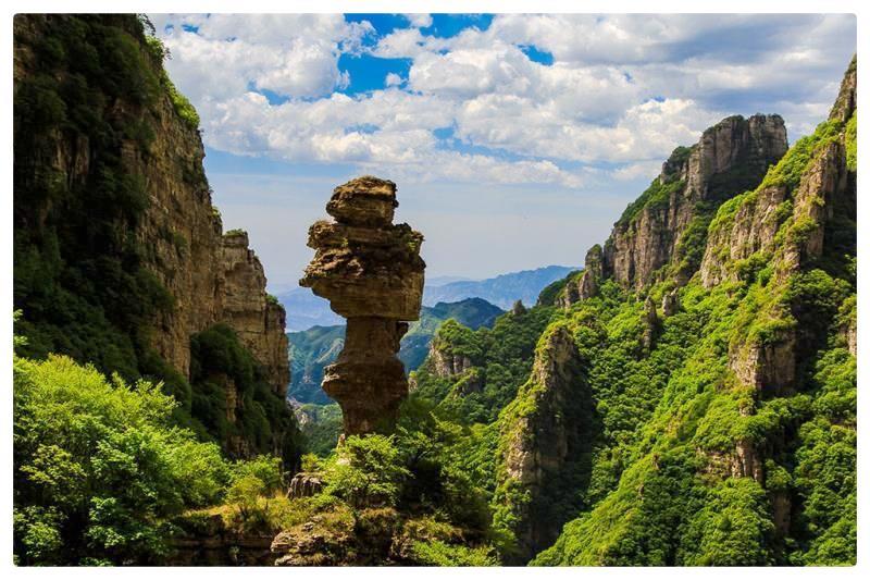 白石山景观多样,集峰林、怪石、绝壁、峡谷、瀑布、森林、云海、佛光、长城、庙观等景观于一体,地貌奇特,结构复杂,是中国古代“三十六洞天福地”之一。