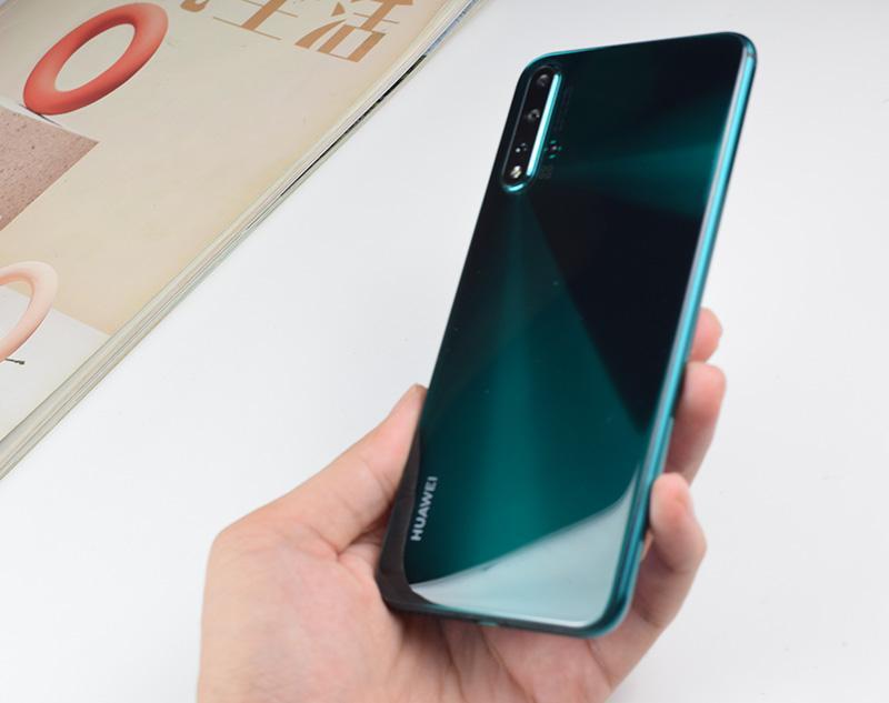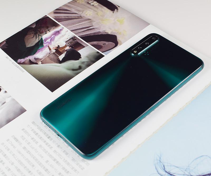 中框部分过渡延续了华为手机轻薄,圆润的手感,没有割手的感觉,即使前后玻璃面板,但厚度控制在仅有7.33mm,重量在171g,即使是娇小的女生也能一手掌握。nova 5 Pro采用了屏下指纹设计,无疑整体感觉更好,背面NO开孔谁不喜欢呢?