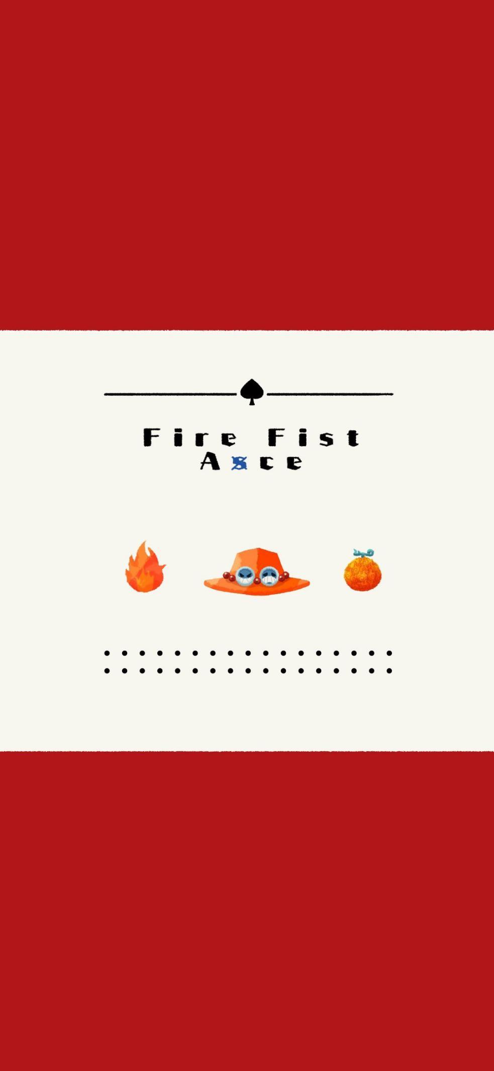 艾斯的壁纸以红色为主要基调,这是艾斯的象征色。在图的正中间是艾斯的橙色帽子,然后左边是象征火拳的火焰,右边是艾斯的烧烧果实。帽子的上方有一个黑桃的图案,这对应的是艾斯才出海时成立的黑桃海贼团。