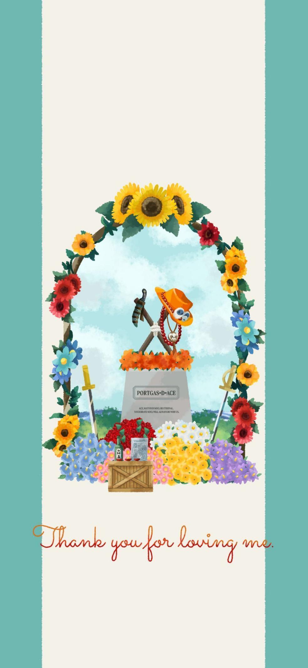 首尾呼应,最后一张也是艾斯的壁纸,图中的主要元素是艾斯的坟墓,这张壁纸想要表达的也是对艾斯的悼念。