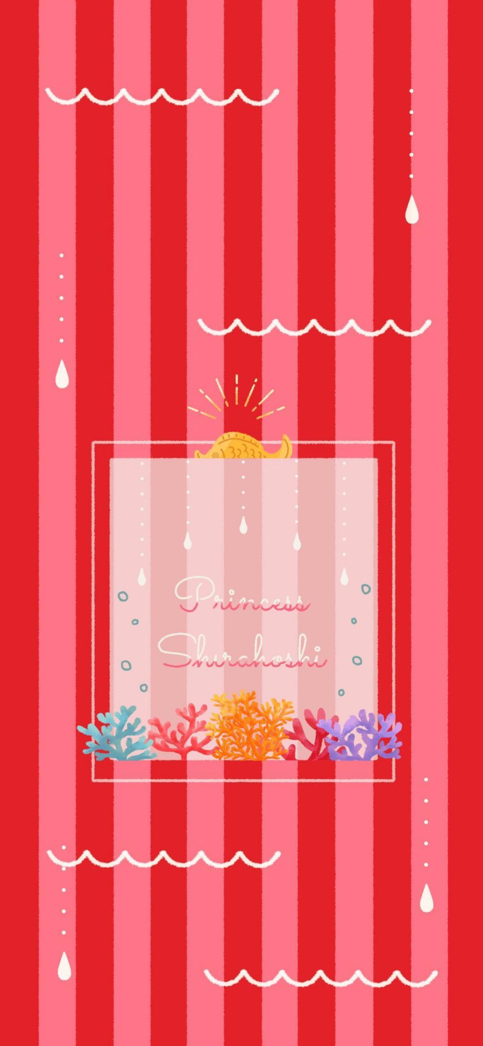 鱼人岛篇的壁纸底色是红色的条纹,这代表的是人鱼的鱼尾。中间的珊瑚则表明了鱼人岛存在于海底。