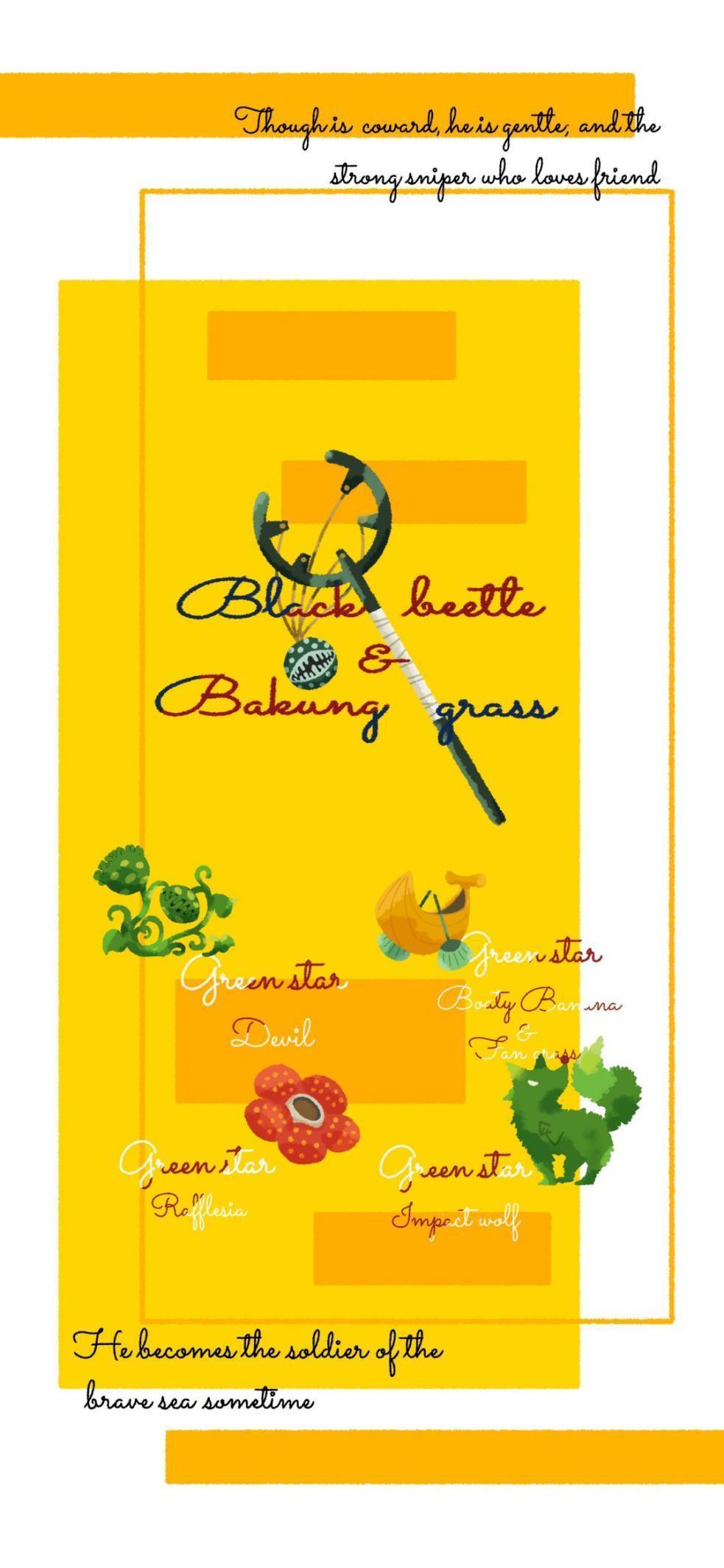 乌索普的壁纸有着鲜黄色,看起来非常明朗,不禁让人联想到了他修炼的那座生命力旺盛的热带岛屿。而且图中还有很多植物以及乌索普的弹弓,这些能够和他的战斗招数有联系。