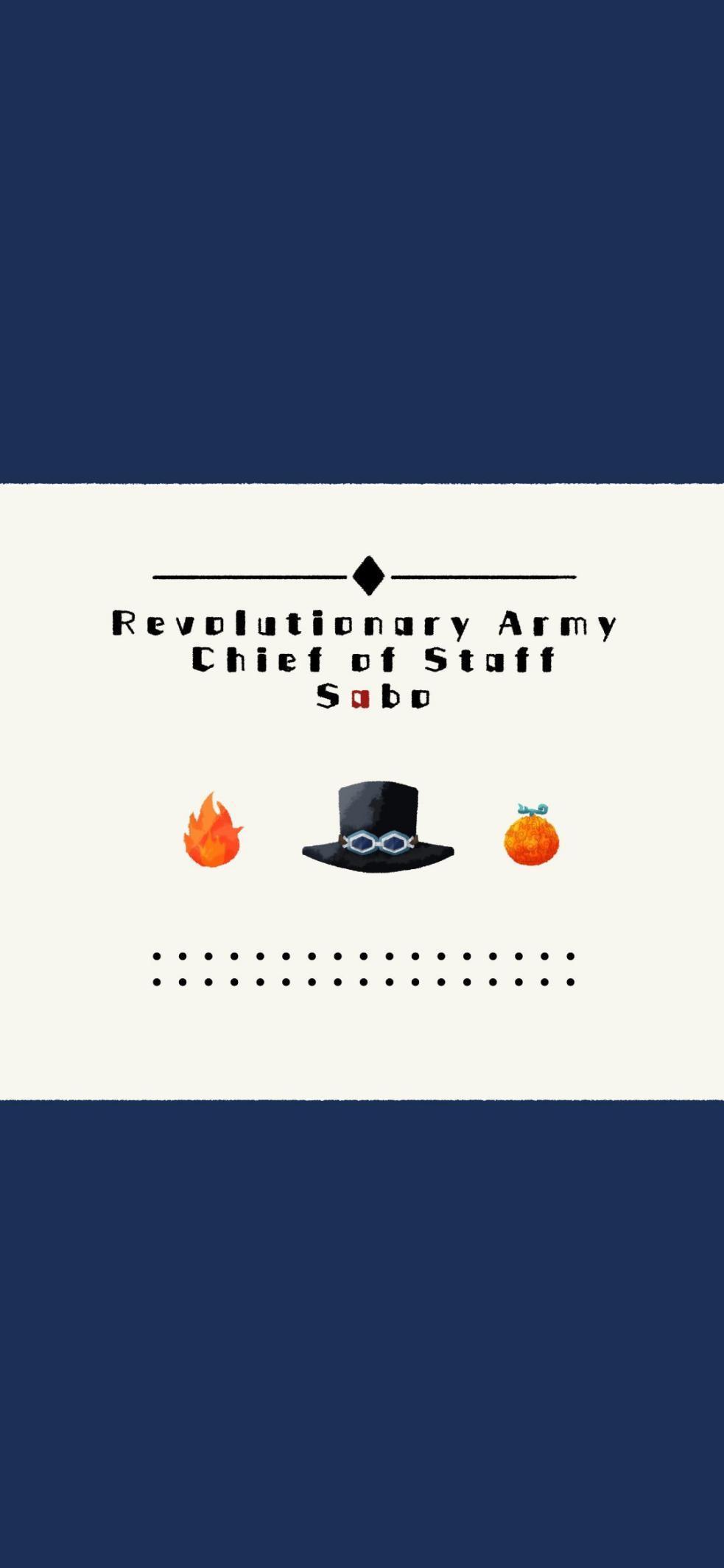 萨博的壁纸是以蓝色为主要基调,因为萨博从小到大都穿着一身蓝色的衣服。这张壁纸和上一张的结构几乎一样,中间的帽子变了,但帽子的左右两边仍然是火焰和烧烧果实,这代表了萨博对艾斯力量的一种承载。