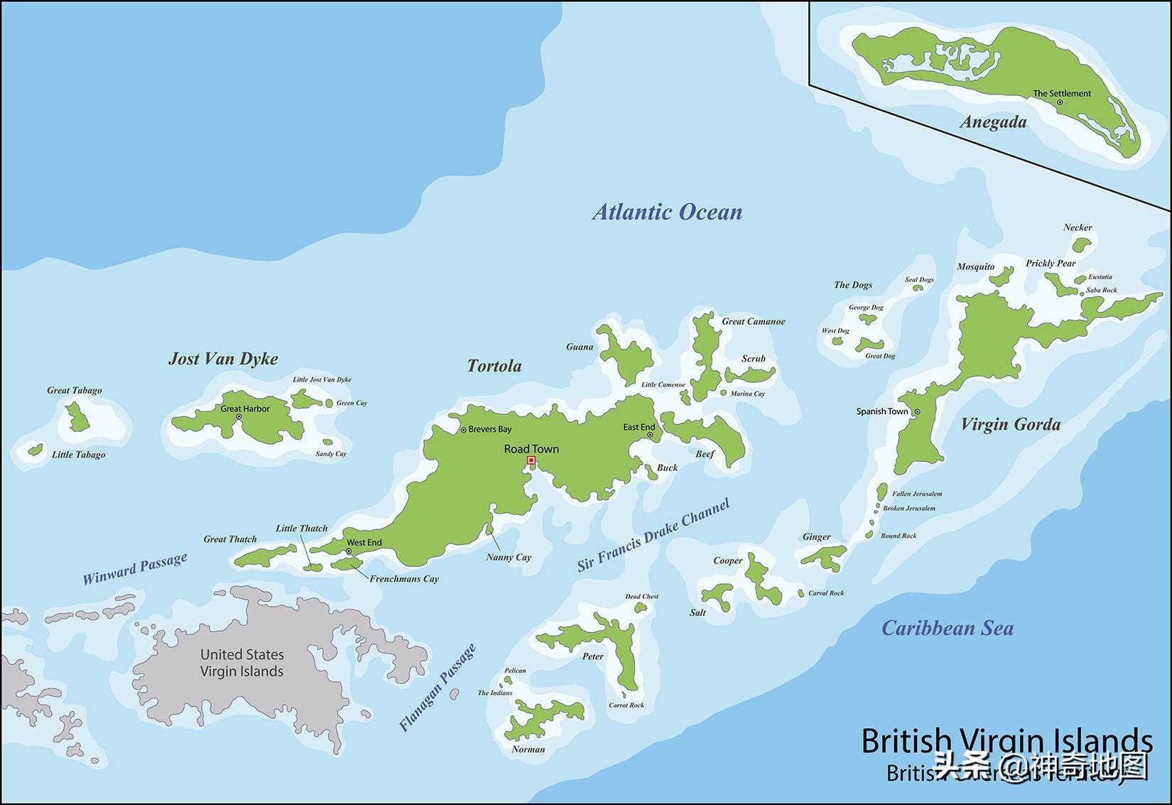 整个维尔京群岛的历史,我在美属维尔京群岛那期写过,这里不再重复。与美属维尔京群岛那些岛名中的宗教色彩不同,英属维尔京群岛的名字带着浓浓的荷兰味儿。也不奇怪,因为这几个岛是1672年(清康熙十一年)后,英国人从荷兰人手中抢过来的。