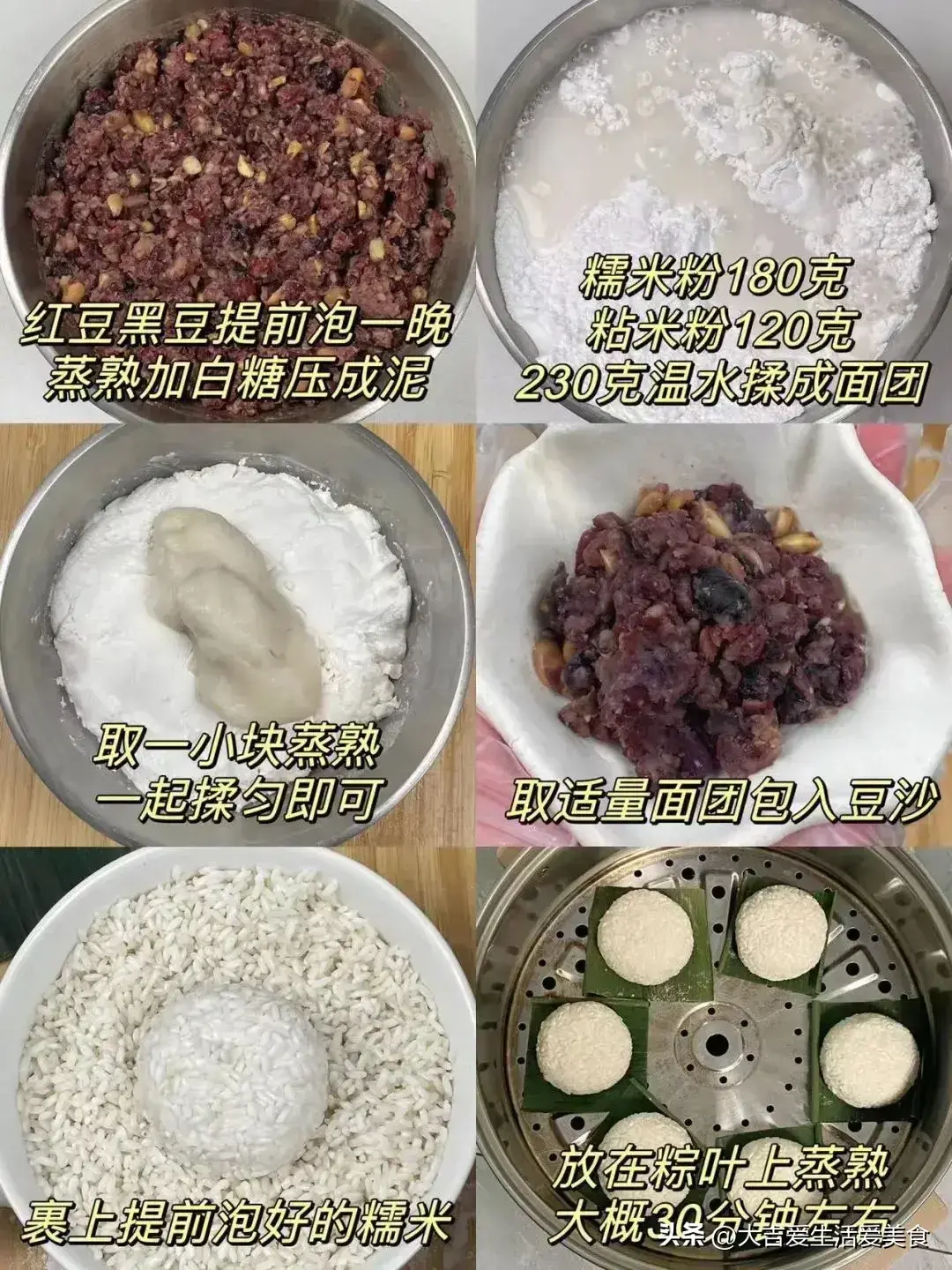我:首先,我们要准备好糯米、红豆沙、芝麻、花生、枣泥等食材。