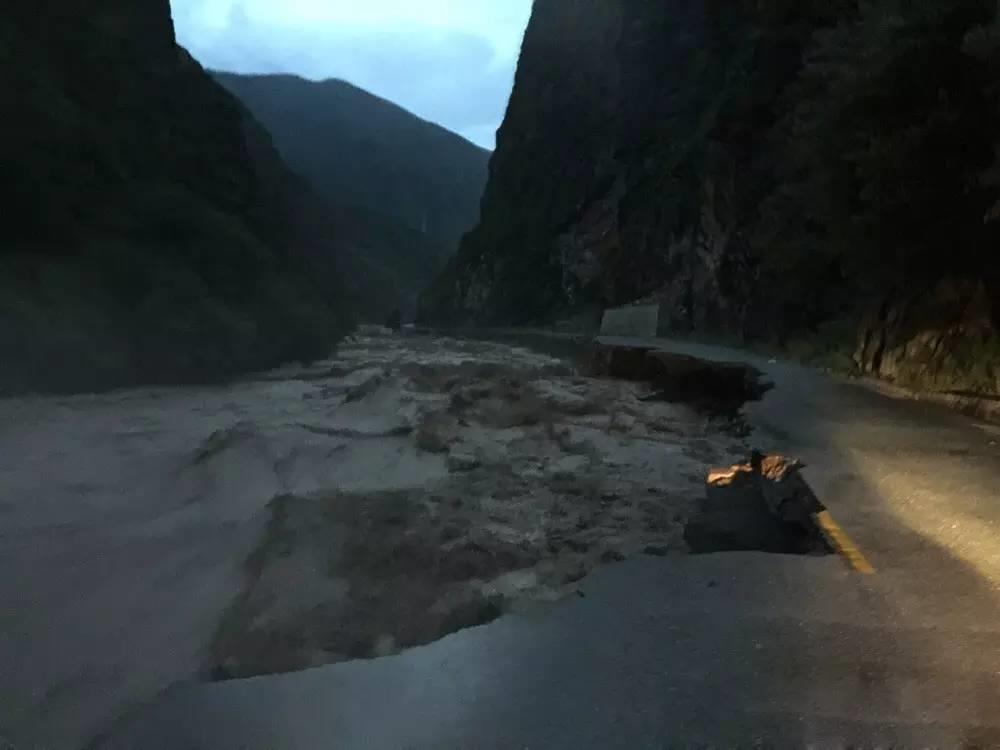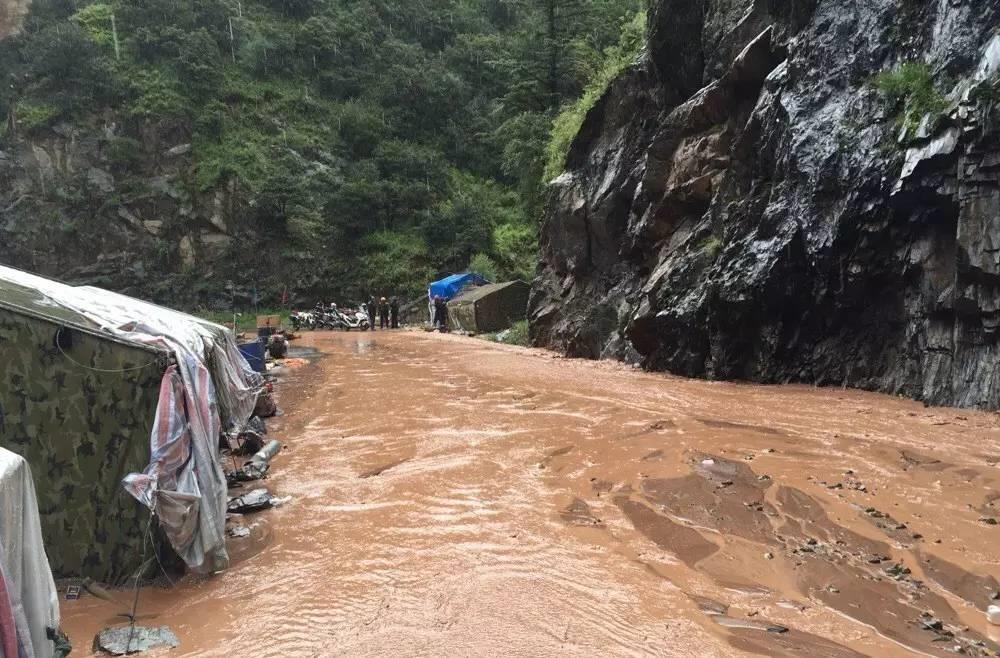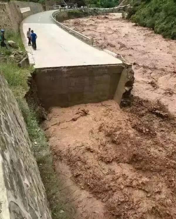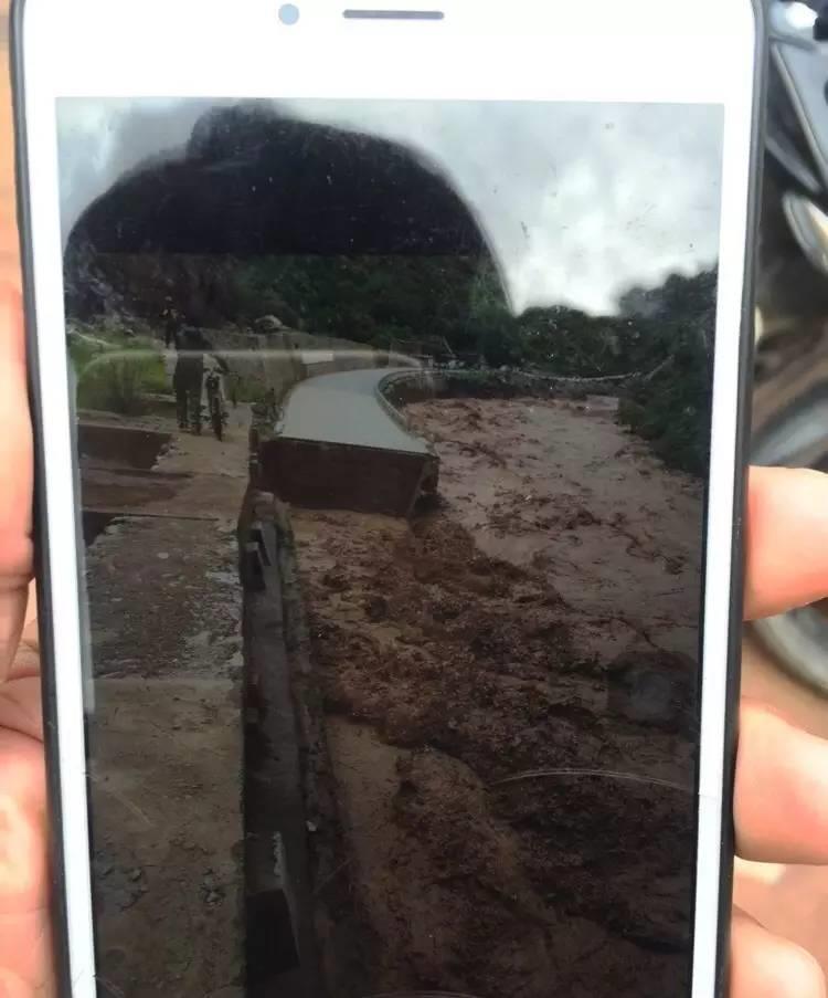 ✪下图为导演六娃拍摄的的现场照片,由于受灾路段仍持续强降雨,河水水位继续上涨,导致无法阻止有效力量进行抢修。暂无法预计抢通时间,请过往车辆注意绕行!