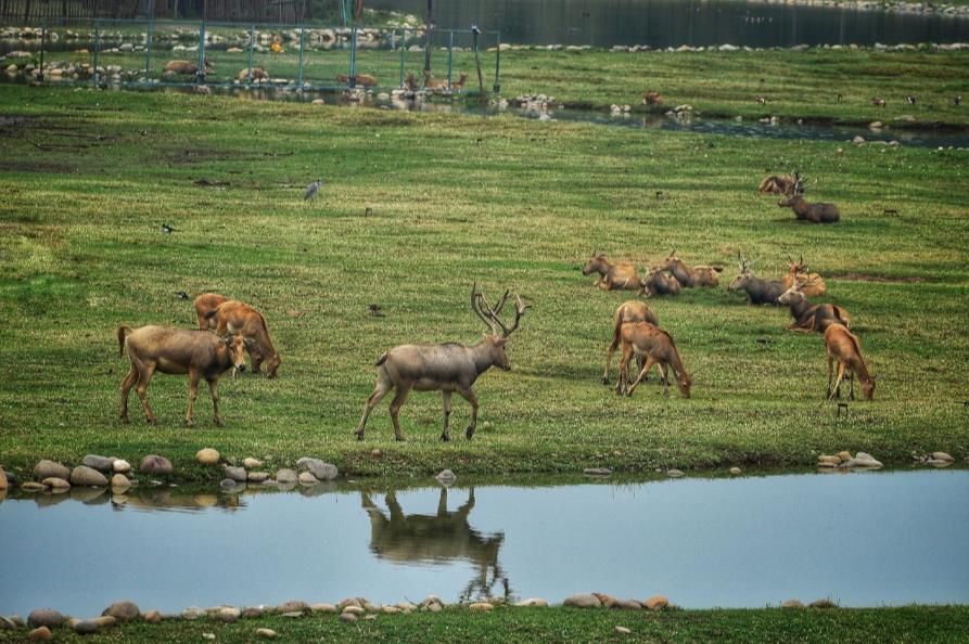 三:中华麋鹿园(盐城市大丰区川东镇麋鹿大道),麋鹿又称四不象,是国家一级保护动物,中华麋鹿园也称为大丰麋鹿自然保护区,可以近距离接触麋鹿,麋鹿很喜欢吃胡萝卜,可以带点胡萝卜喂它,拥有数千头麋鹿,大片的林地、沼泽和水面,生物多样性丰富,生态系统良好。
