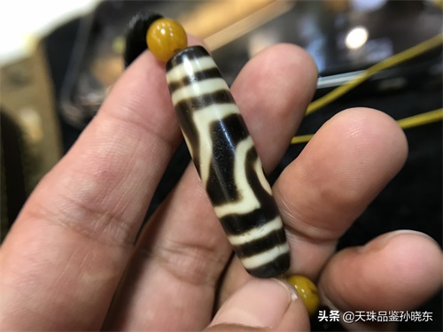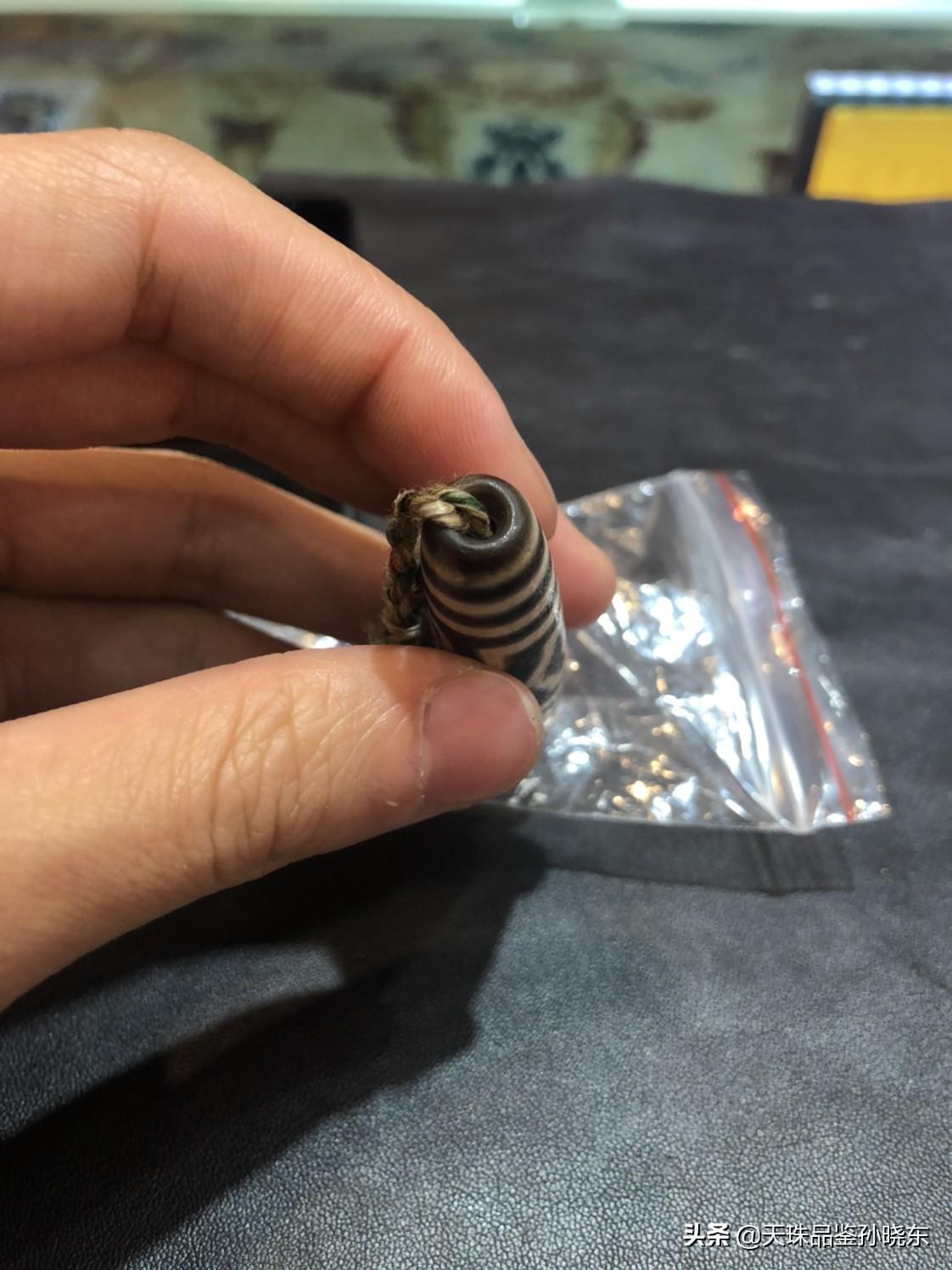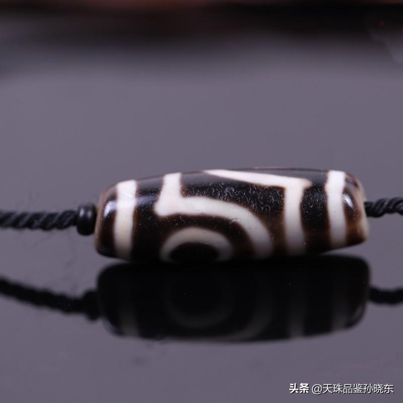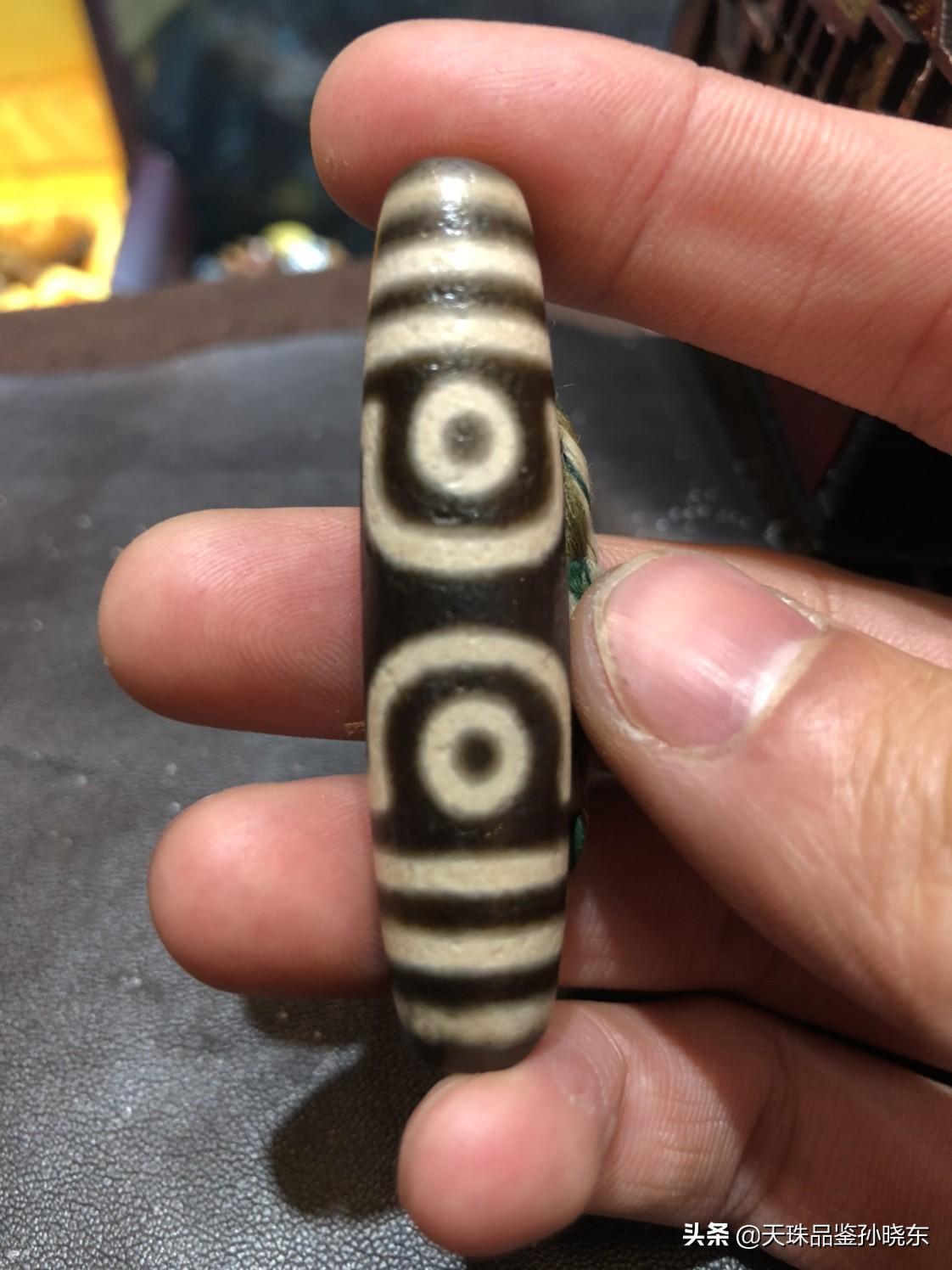 这颗珠子图腾为折线两佛眼,真品市场价格起码在30万往上,是少见的一类天珠。