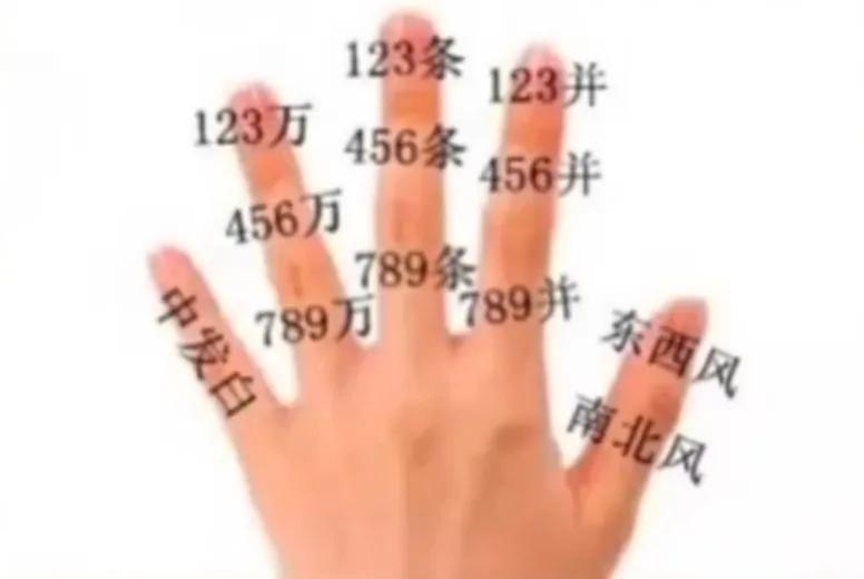 一、摸手指大家应该可以从图中看出,玩作弊的人可以通过每根手指的关节来向同伙传递他要排的讯息,用手指的关节划定界限与牌的种类,另一只手在哪个关节敲一下或者摸一摸就是第几个数字,比如在食指的第二个关节敲一下就是他需要4万了,然后同伙看到后就会打给她想要的这张牌。